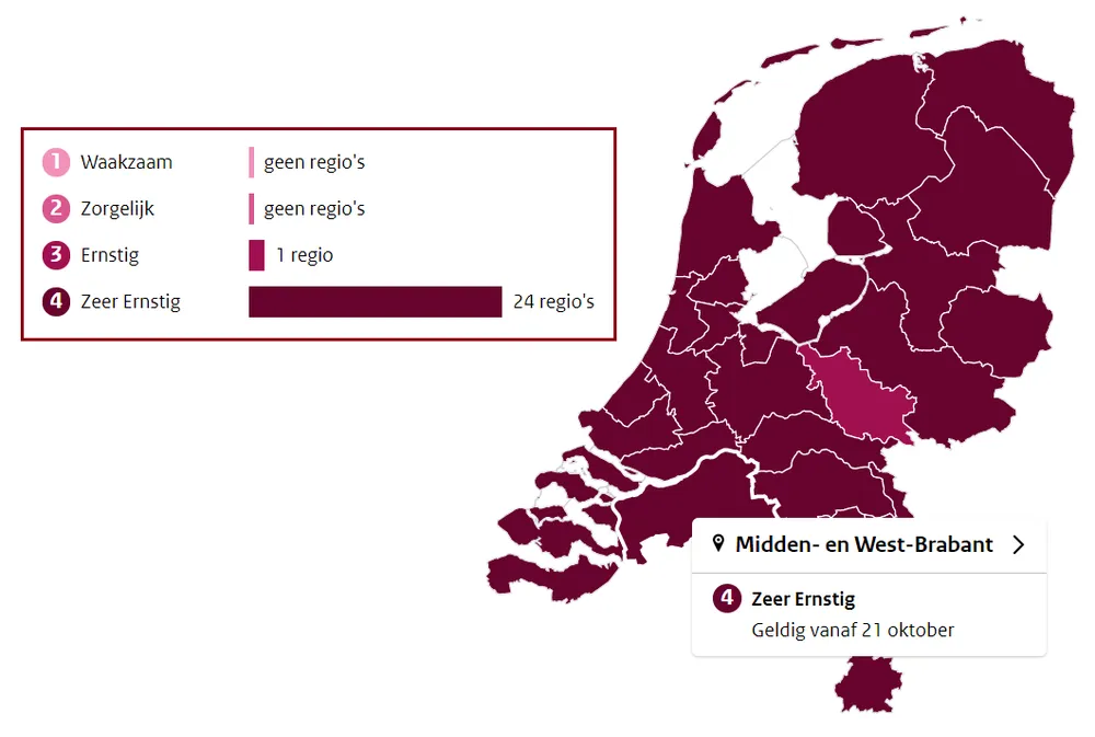 Er zijn in de veiligheidsregio Midden- en West-Brabant op woensdag 485 coronabesmettingen gemeld. Volgens RIVM-cijfers is dat een stijging ten opzichte van een week eerder. Ook in verschillende West-Brabantse gemeenten schoot het aantal besmettingen in de afgelopen week omhoog.