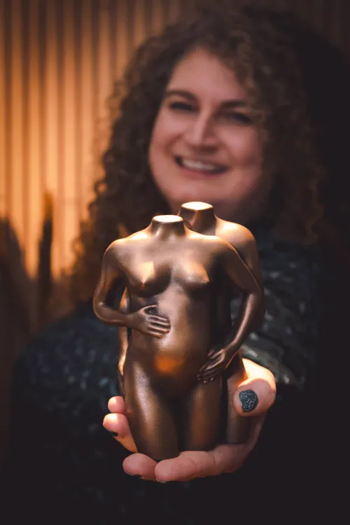 Wat Miranda het meeste hoort van vrouwen als ze in gesprek is over haar werk, is dat ze achteraf spijt hebben dat ze hun zwangerschap niet op deze manier hebben vastgelegd. “Vooral als ze voor een tweede keer zwanger zijn. Bij de eerste zwangerschap is alles de eerste keer, en dat moment komt nooit meer terug. Daarom zeg ik: laat het beeldje maken, ook als je niet zeker weet of je het in de woonkamer neerzet. Je kunt het namelijk niet achteraf alsnog laten maken. Ik heb ook vrouwen die na een beeldje van hun eerste zwangerschap terugkomen voor een beeldje van hun volgende zwangerschap. Soms zie je dan duidelijk de verschillen in het lichaam tussen die periodes. Elke zwangerschap is anders.”